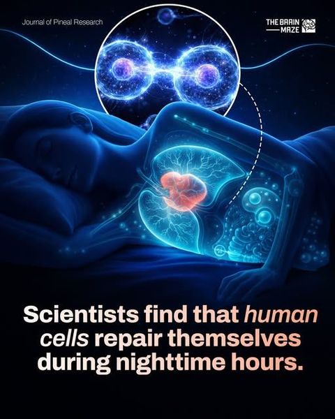 Scientists have found that human cells engage in increased repair and recovery processes during nighttime sleep. Research published in the Journal of Pineal Research shows that circadian rhythms and melatonin secretion play a key role in regulating cellular repair, antioxidant activity, and DNA protection during the night. Multiple review articles in the journal explain that melatonin enhances mitochondrial function and reduces oxidative stress, creating optimal conditions for cell restoration while the body is at rest. Experimental studies reported in the Journal of Pineal Research also demonstrate that disruption of nighttime light exposure impairs these repair mechanisms at the cellular level. These findings collectively support the conclusion that nighttime biology is essential for maintaining cellular health and long-term physiological resilience.