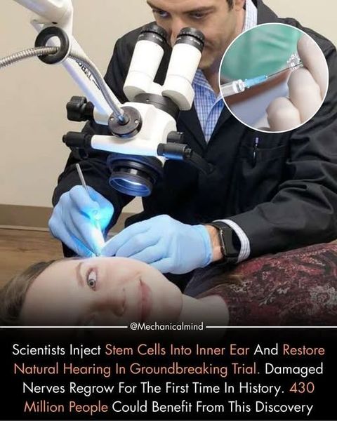 Scientists have achieved a historic breakthrough by successfully restoring natural hearing using stem cell therapy. In the trial, stem cells were injected directly into the inner ear, where they regenerated damaged auditory nerve cells — something previously believed to be impossible. For the first time, hearing loss was treated at its biological root, not managed with devices.