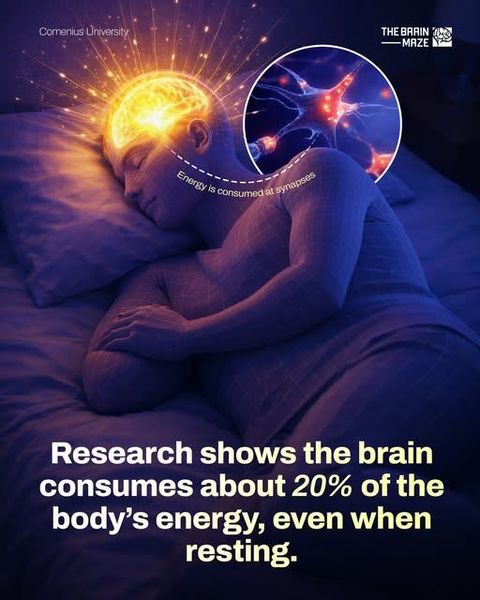 Research from Comenius University shows that the human brain consumes approximately 20% of the body’s total energy, even during rest or sleep.